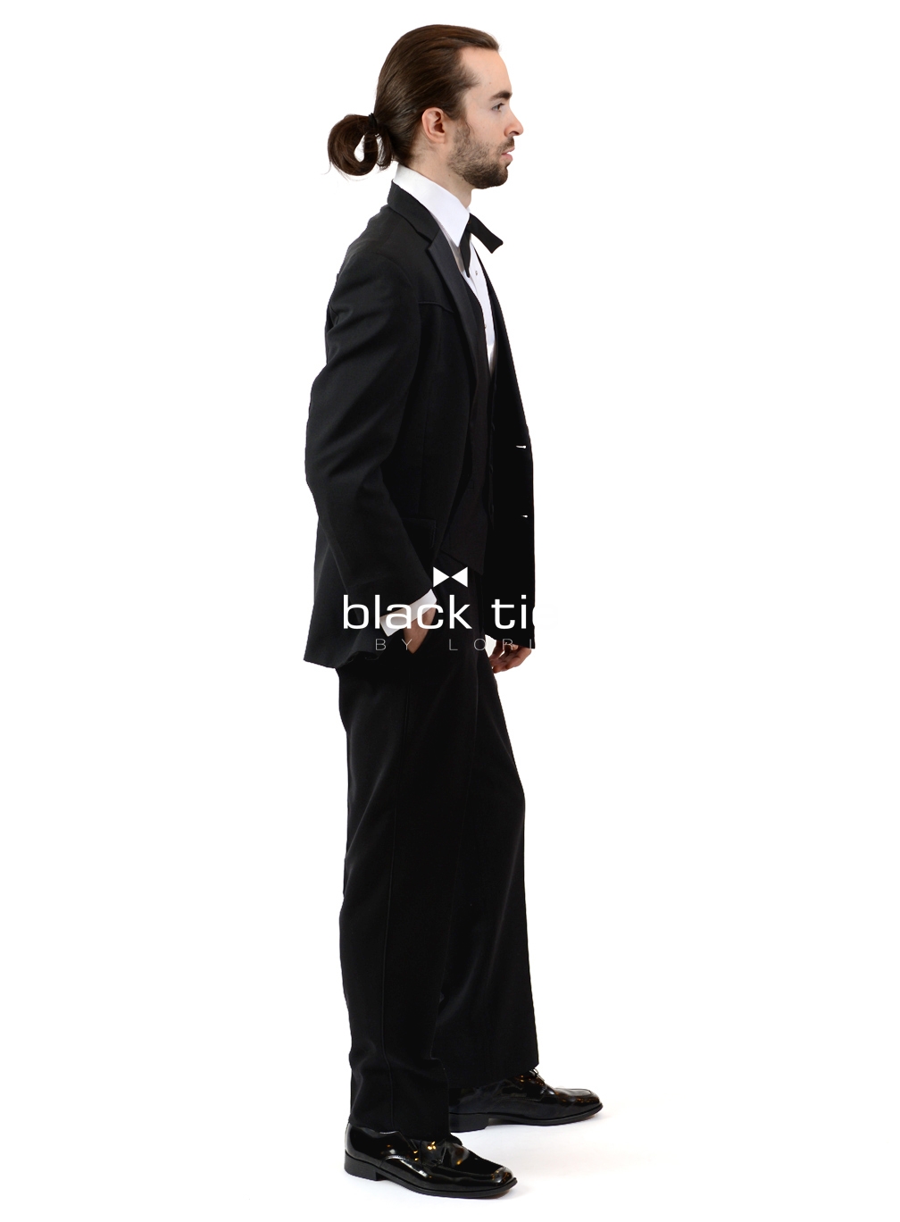 Show your Western spirit when you choose the “West End” Western Tuxedo. Tailored in a traditional fit with classic western details including a front and back-corded yoke, etched bone buttons, corded and scalloped pockets and a premium satin notch lapel. Perfect for themed weddings and events. Complete the look with a bolo, string tie, or crossover tie and matching pleated or flat front trousers.